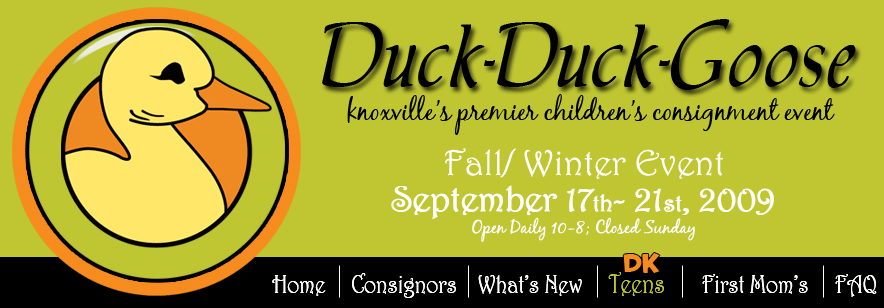 Copyright © 2009 Duck-Duck-Goose Children's Consignment Event All Rights Reserved. Site Designed & Maintained: Duck Duck Goose, LLC |site map|